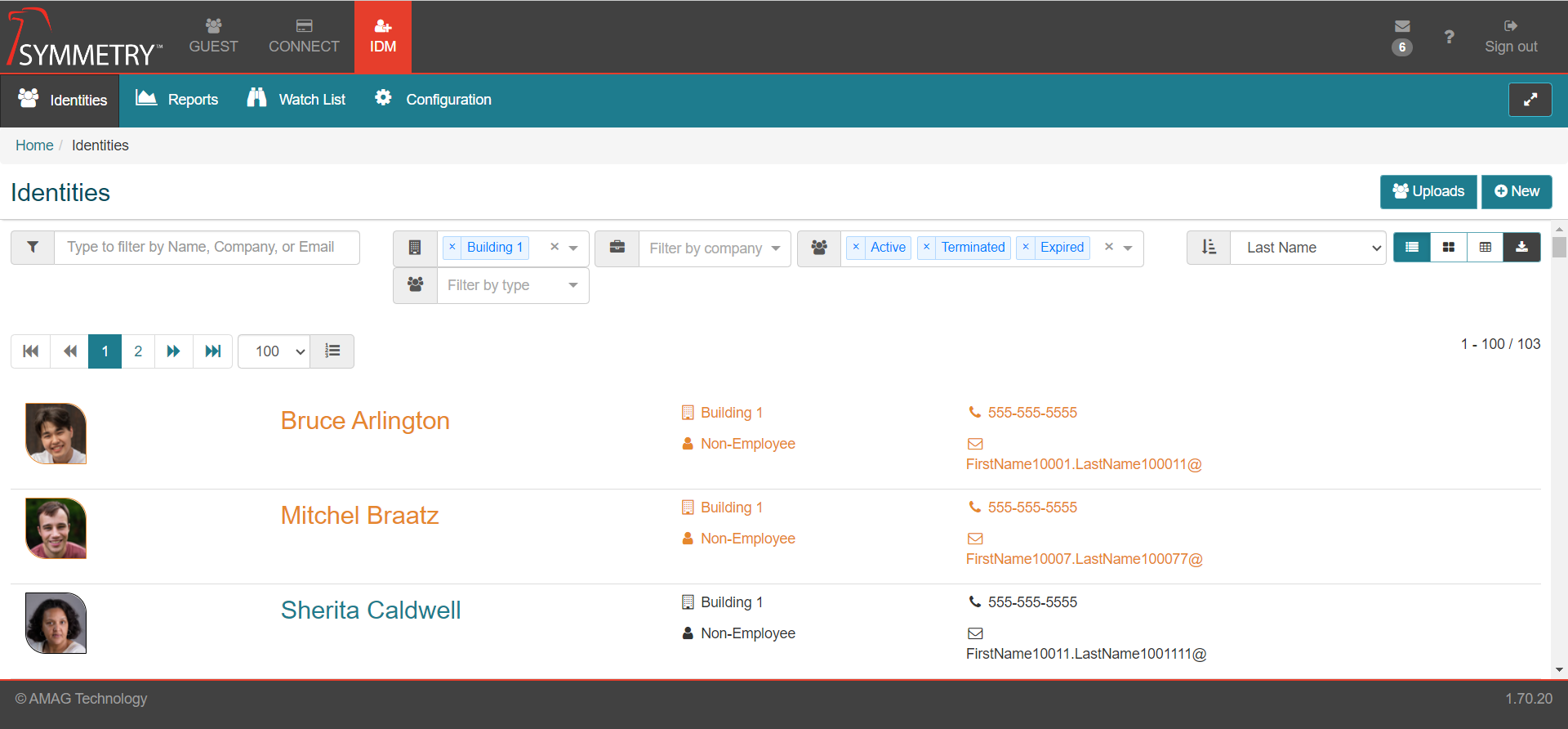 This section covers how to add Identities into the application. Identities is the generic term used to describe employees and non-employees (e.g. contractors, vendors etc.). Visitors can also be added (refer to Visitors for further information). Identities are essentially users of the system and are listed on the home page of the Identities tab.